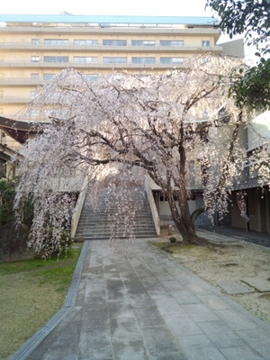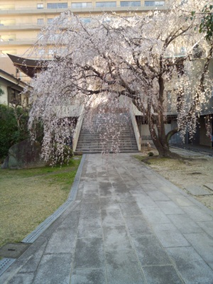 こちらには立派なしだれ桜があるんですよ〜!そして、いつも開花がソメイヨシノよりはやいので、、、