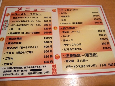 カウンターにすわって、メニューをみてみると、、、煮込みラーメンというのがスタンダードのようですね。でもやはりテール入り煮込みラーメンいってみました〜!
