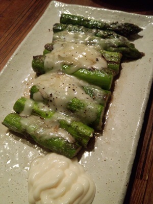そして、、、WAO!の女将さんのお兄さんが北海道の市場から直送してくださった、、、、、おっきなアスパラガスをいただきました!やさしいお兄さんの思いがこもったアスパラガス、、、ひとくちいただくと、、、、きゃ〜〜〜!美味しすぎる〜〜〜!上にのっているチーズもアクセントになっていいですね〜!