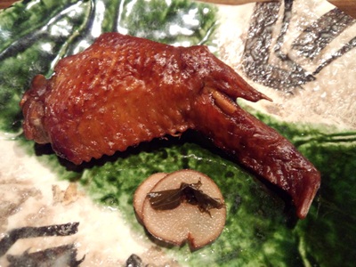 まずは、先付けからいただきます〜!今回は久しぶりに手羽先の燻製!以前これにはまっていっつも食べていましたね。この日もとってもおいしくいただきました!