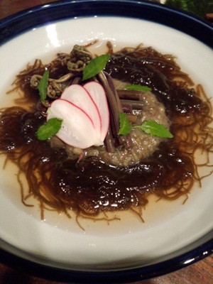 そして、、、ここでメニューにのっていないこちらが登場しました!たたきわらびともずくです!わらび〜〜〜!はせべさんでわらびを頂くのは初めてです。しかもたたきわらび!そんなのあるんですね〜!季節を感じる一品でした!