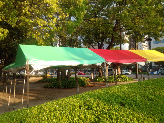 さてさて、昨日パークサイドホテル広島へ歩いて平和大通りから向かっていると、さっそく始まっていましたよ。設営が!