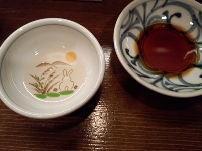 醤油と煎り酒でいただきます。煎り酒が当たり前のようにすっと出てくるところが雰囲気があっていいですね〜。
