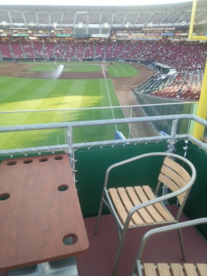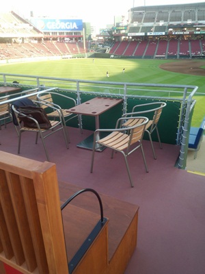 入ってみると、、、なんと!かなり野球が見えやすい!そして、広い!こちら7人用なのですが、ウッドデッキに座るとかなりゆったりできますよ〜!