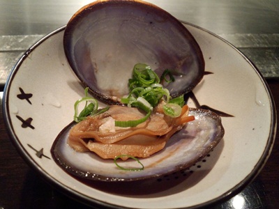 まずはつきだしのハマグリから!確かハマグリだったとおもいますが、立派な貝でした〜!