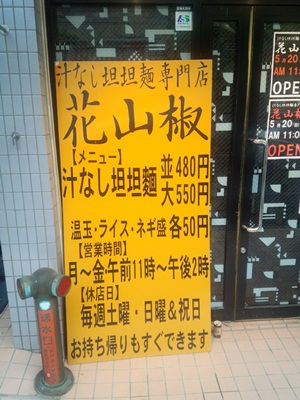 さて、先日ご紹介しておりましたが、パークサイドホテル広島の周辺に新しい汁なし担担麺のお店、花山椒さんですが新たに張り紙が登場していました!