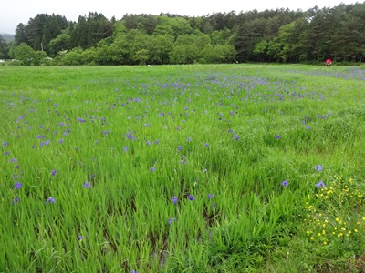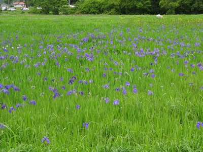 およそ1.7haの休耕田に、20万本ものカキツバタが植えつけられいて、これを地元のかたがたが一生懸命育てられているそうです。すばらしい試みですよね〜。