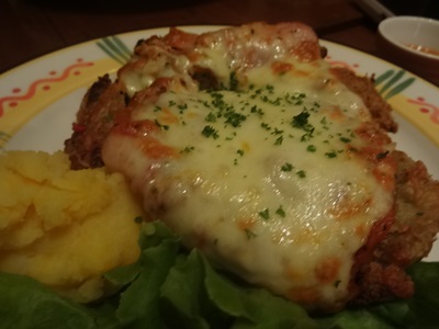 つづいてミラネーサ!牛カツと呼べばわかりやすいでしょうか?チーズたっぷりかかっていて外はかりかりなかはジューシー!
