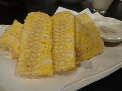 付きだしもおいしかったので、とうもろこしの天麩羅をお願いしました。
