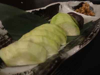もうかなり食べて飲んでしていたので、あまり食べれなかったのですが、それでも水ナスのお刺身をお願いしました。