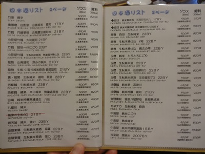 日本酒のメニューが豊富!豊富すぎて何を飲もうかなって悩むくらい豊富です!すごい!