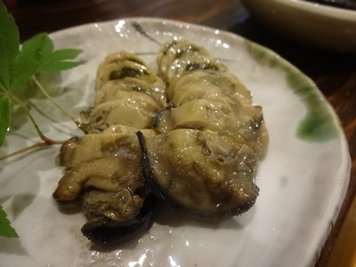 なんとふぐの子のぬか漬けがありました!広島で見たのは2軒目です!すごいですね〜!お話を伺うと全国いろいろ旅されて食材やお酒の勉強や交流をはかっていらっしゃるそうです。すごいバイタリティーあふれる方でした!ふぐの子の下にある緑色のものは、自家製のビタミン大根なんですって!一緒にいただくとさらにおいしかったです!