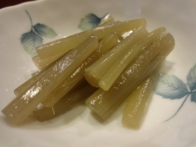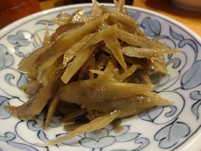 まずはふきからいただきます。ほぼ年中ふきを準備してくださるので、うれしいんですよね〜。ごぼうのきんぴらもいただきます。