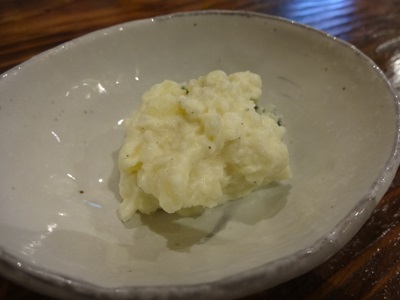 まずは生ビールで乾杯しながら、付き出しはポテトサラダ!新じゃがだそうです。うん、おいしい〜〜!