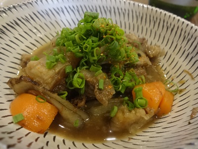根菜と牛すじです。ごぼうがたまらなくおいしかったです。