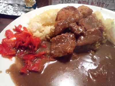 サフランライスの上にはおいしそうなササミチーズカツが!そして、いい香りのルーが!