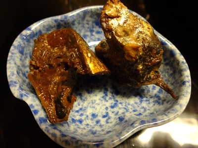 ひとくちいただいてみると、、、う〜〜〜ん!おいしい〜!なにやらいい香りがついていました。藁なんですかね?私にはわかりませんでしたが、おいしいことだけはわかりました。頭からかぶりついて残さず全ていただきました〜。