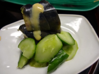 なすと胡瓜のお漬物もかなりおいしかったです。このお漬物だけで一席終えても後悔がないくらいのおいしさでした。