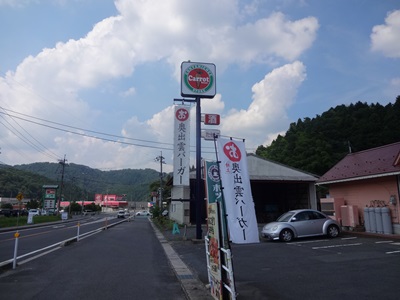 すぐ斜め前のコンビニのようなお店の表に、、こんなのぼりが、、、奥出雲バーガー!これは、最近流行の、、、ご当地なんとかってやつですね!ご当地バーガーこれはたべておかなければ、、、
