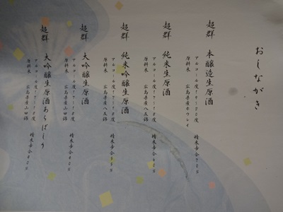 んで、、、おしながきを見ると、、、夏をイメージした台紙に、、、おやおやおや?全て生原酒じゃないですか〜!これはすごい!このお酒買えるのかなと思って聞いてみると、、