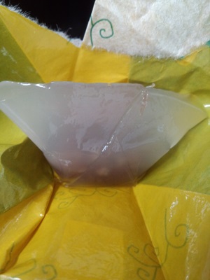 少し冷やして、スタッフ全員で頂いてみました。袋をあけると、、おおおお!おいしそうな葛とともに、ほのかな酒粕の甘い香りが〜〜〜。おいしそう〜〜〜!