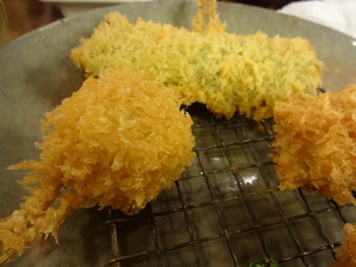 串カツのほうも同じように揚げてくださっているので、ころもがさくさくでとってもおいしい〜〜〜!