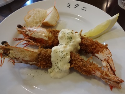 有頭海老のエビフライも大ぶりで食べ応えありました!タルタルソースも美味でした〜!
