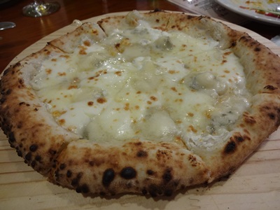 そしてここでクアトロフォルマッジをお願いしてみました!ゴルゴンゾーラのチーズが使用してあるので、結構お店によって風味が違ったりしますが、、、、こちらのパルコデッラパーチェさんのクアトロフォルマッジは、、、香りよし、風味よし、そして生地最高〜〜〜!ゴルゴンゾーラもしっかりきかせてあって、おいしかったです!