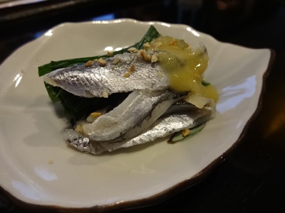 先付けは小いわし!先付けが小いわしってところがすごいですよね〜!