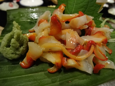瀬戸内名物の夜鳴き貝も登場しました!こりこりした食感がたまらない逸品ですね〜!最近ではこの夜鳴き貝が貴重で値段がどんどん上がってきていますね。久々にいただきましたが、やっぱりおいしい!