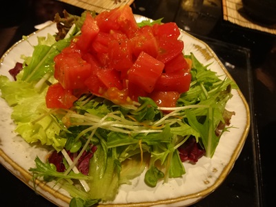 トマトたっぷりのサラダもいい味していましたね〜!サーブしてくださったのがホールの方ではなく女性の板場の方でした。がんばってらっしゃいましたよ〜!