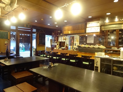 さかえさんはお母さんが手作りされたおばんざいを楽しめるお店です。カウンターの上に並んだおばんざいをつぎつぎと頼んでいきます。