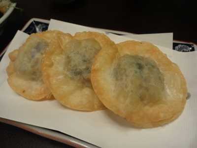 そして登場したのが、納豆UFO揚げ!登場した瞬間、一同がなるほど〜!と声を上げました!餃子の皮に納豆をはさんで揚げているんですね!これはいいアイディアですね〜。揚げ物として、そして体にいい納豆としておいしくいただきました〜!