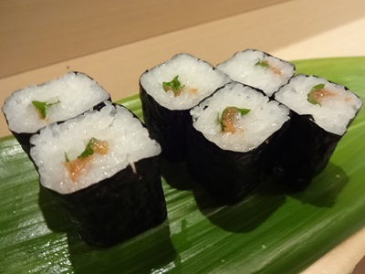 たこをおいしくいただいたあとに、〆で芽ねぎと海鮮太巻の特をいただきました。
