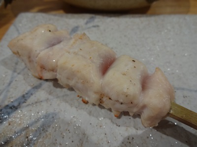 次にいただくのはやはりささみ!私は春風さんで初めてささみを食べる前に焼鳥でささみなんてたのんだことなかったのですが、春風さんでおいしいささみをいただいてからはどこに行ってもささみを食べるようになりました。レアに仕上げてくださっているので、とってもやわらかくてまったくぱさついていません。他で食べていたささみはなんだったのかと思うほどです。