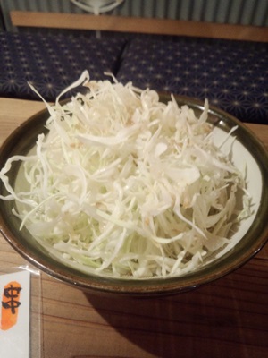 まずは付きだしのキャベツから!赤まるさんのこの付きだしめちゃおいしんですよね〜。塩とごま油がかかっていて、やみつきになります。