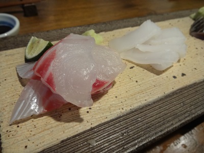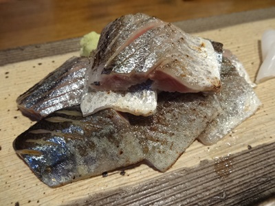 軽く炙ってあるのですが、脂ののりがいいですね〜!てかっています!一口いただくと、、、とろけますね。さんまがとろける!一緒に登場した鯛のお刺身もおいしかったです〜!