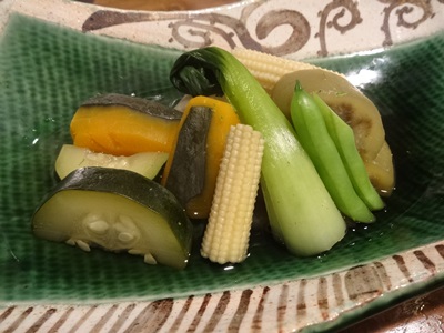 つづいて久々の季節野菜の炊き合わせを!はせべさんに初めて訪れたときはこの野菜に感動したことをいまだに覚えている逸品です。