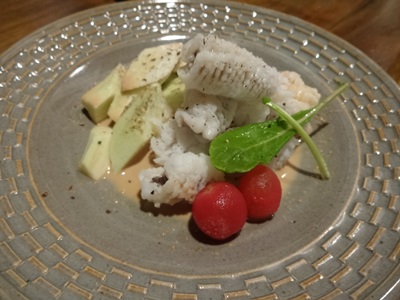 まずは先付けから!にんじんのムースだったような気がしますが、めちゃめちゃおいしい〜!もう一つ食べたいくらいでした!