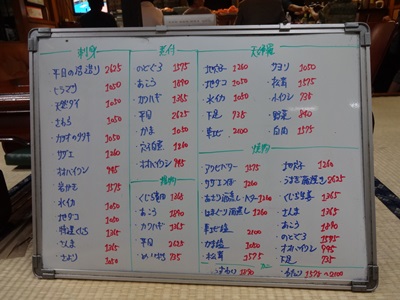 ふとカウンターを見ると、、カニ食べ放題とかかれていて、大人が3000円位だったと思います。安い!まずは生ビールで乾杯して、メニューを見てみると、、、さすが海鮮と名がついているだけあって、おいしそうなお魚がずらっと並んでいます。