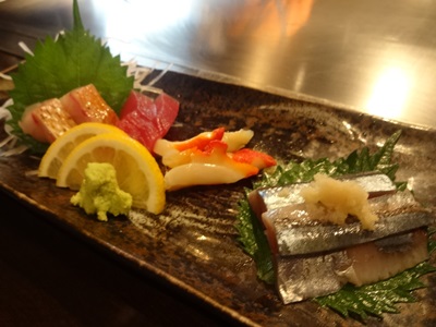 この日のメニューをみてみると、お刺身が豊富にあったのでまずはお刺身から!小いわしや夜鳴き貝、アマダイ、まぐろといただきました〜!鉄板焼屋さんですが、お刺身も毎朝仕入れにいかれているのでとっても新鮮で美味です!