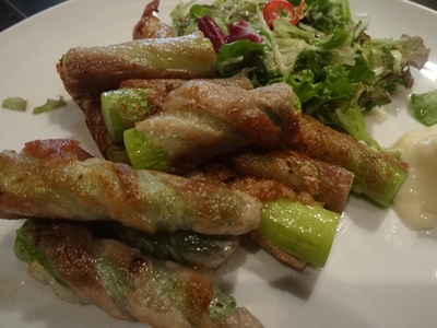 大好物のアスパラを!これ写真ではわかりづらいかもしれませんが、かなりおいしいんですよ〜!