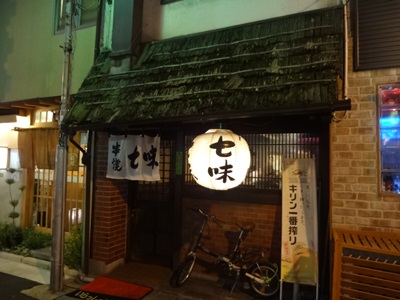 お、お、おでんと焼鳥!二つも楽しめるお店があるんですか!!!それは初耳!ということでさっそく伺ってきました〜!お店の前に到着すると、大きなちょうちんがぶら下がっていて、七味と書かれていました。なかなか歴史を感じる店構えに期待が高まります。のれんがあるお店はおいしいって私のジンクスがありますからね〜。