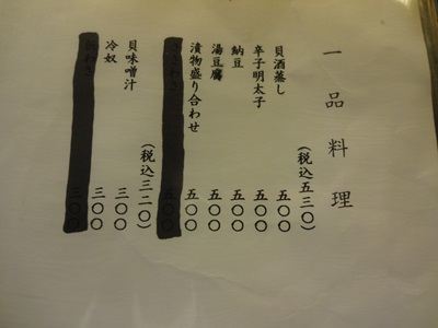 ここから一品料理のメニューをみながら、、、納豆と貝酒蒸しをお願いしました!