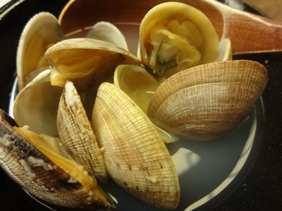 貝の酒蒸しもとてもいい香り〜!貝もぷりっぷりでとってもおいしいです〜!