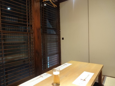個室に通していただきましたが、こちらの個室もとっても居心地がいいですね。もちろん掘り炬燵です。建具もとっても立派でしたよ〜。