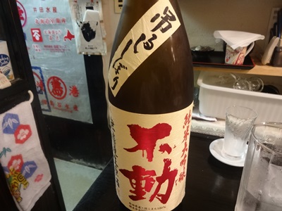 つづいていただいたのが、不動というお酒!不動 吊るし無濾過 純米大吟醸生原酒です!千葉のお酒だそうですがこちらもおいしい〜!