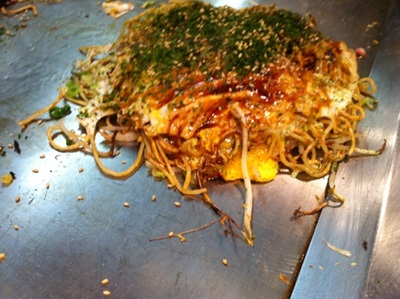 ちょっと食べてきていたので、〆としてお好み焼きの肉玉そばイカ天とお店の名前がついている五ェ門巻きをお願いすることに!