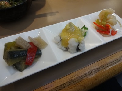 つづいて登場したのが、おつまみ3種盛り!白身の南蛮漬け、胡瓜の酢漬け、鱧の湯引きをいただきました!どれもおいしい〜!一緒にいただいた日本酒は石鎚でした!