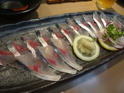 「新鮮なサバが手にはいったから、刺身で食べてみてね〜!しょうがとわさびはどっちがいい?」ということで、しょうがでいただきました!サバの刺身をまさか広島で食べれるとは、、、サバの刺身は初めてかもしれません!この透き通る色がすごいですね〜!